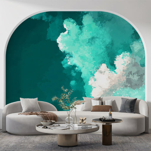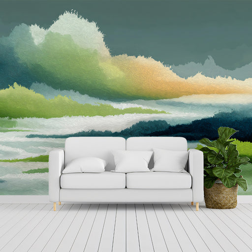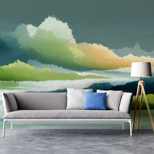 Visualizza tutti i dettagliCarta da parati murale astratta paesaggio nuvoloso | Arte testurizzata verde e blu