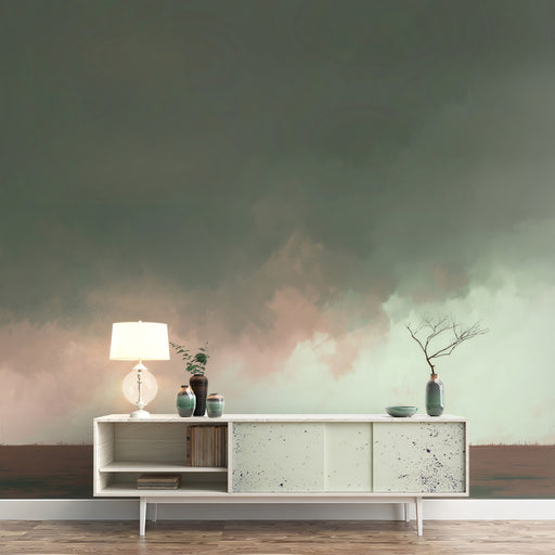 Visualizza tutti i dettagliCarta da parati murale con paesaggio nuvoloso malinconico | Verde e nero