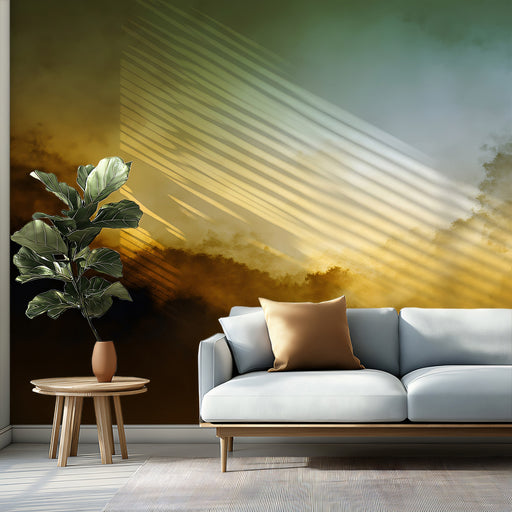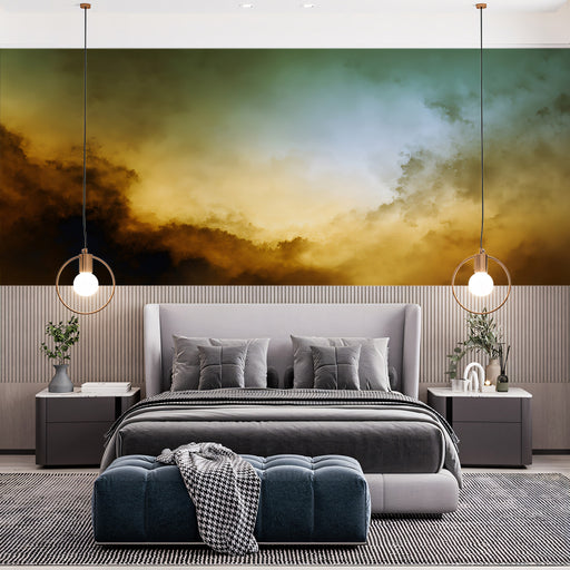 Visualizza tutti i dettagliCarta da parati cielo tempestoso astratto | Verde acqua e giallo