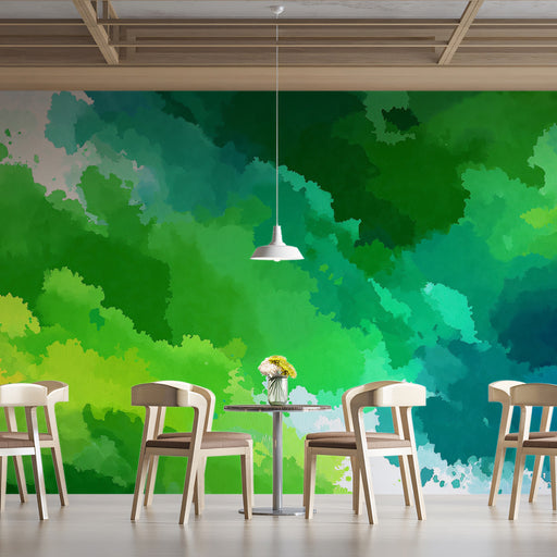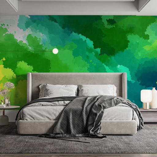 Visualizza tutti i dettagliCarta da parati murale con nuvole verdi astratte | Texture serena ad acquerello