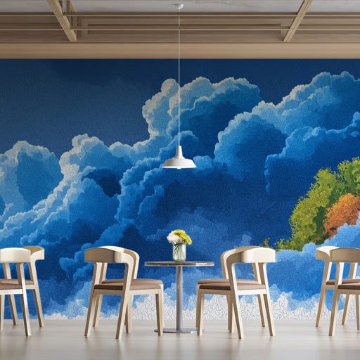 Visualizza tutti i dettagliCarta da parati murale isola fluttuante astratta | Cielo blu e nuvole capricciose