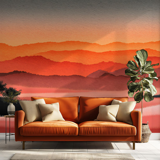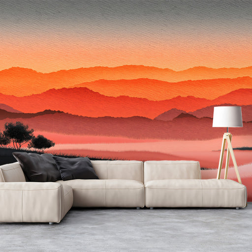 Visualizza tutti i dettagliCarta da parati murale tramonto retrò | Paesaggio astratto stratificato