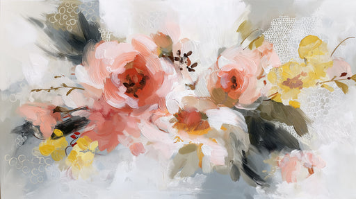 Visualizza tutti i dettagliCarta da parati murale floreale astratta artistica | Bouquet impressionista rosa, oro e grigio morbido