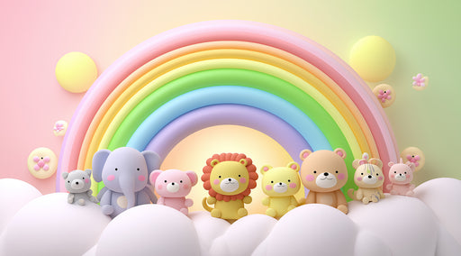 Visualizza tutti i dettagliMurale Arco di Animali Arcobaleno 3D | Camera dei Bambini in Tinte Pastello, Effetto Peluche, Colori Brillanti