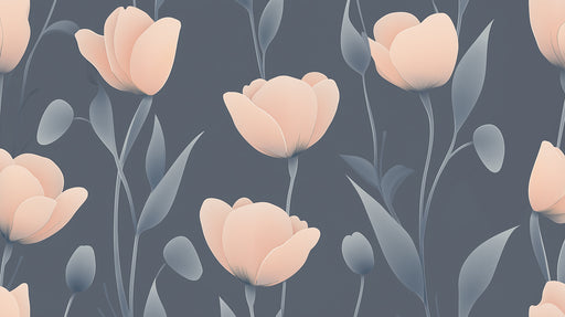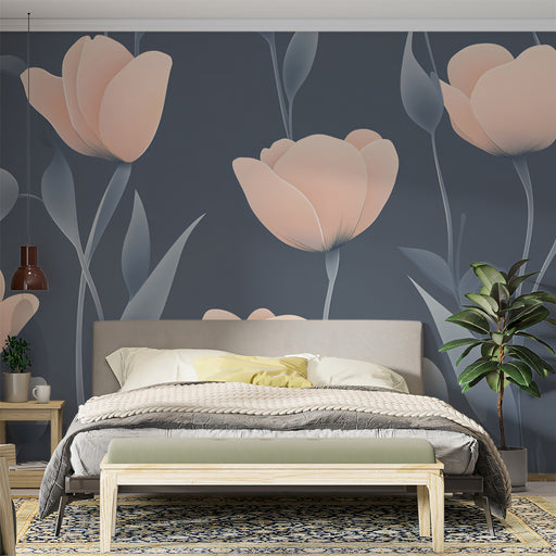 Murale floreale con petali di pesca | Tulipani astratti delicati su sfondo antracite