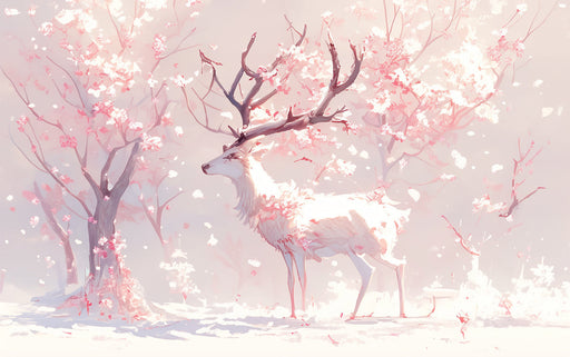 VivawallsQuesto sfondo mostra una bellissima scena di un cervo circondato da un paesaggio di alberi in fiore rosa. I delicati toni rosa dei fiori creano un'...