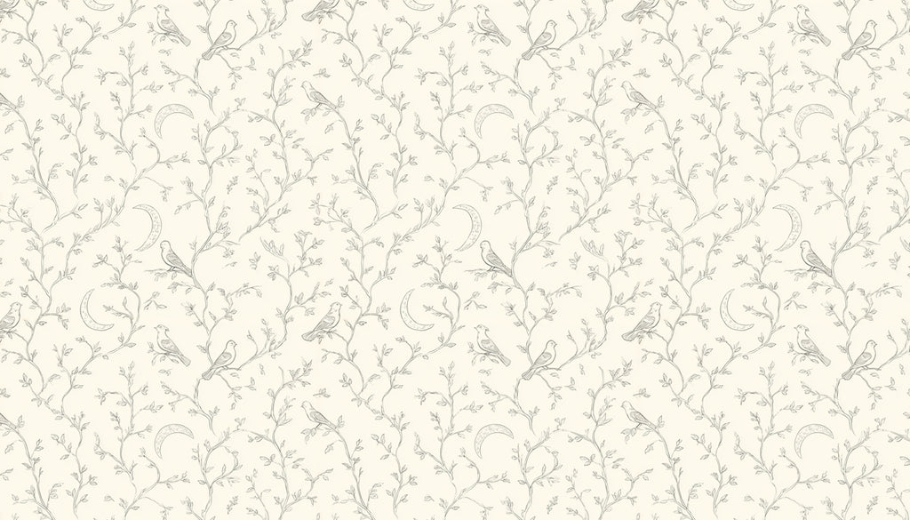 Questa carta da parati unica presenta un affascinante motivo di uccelli appollaiati su rami intricati e spiraliformi, intervallati da lune crescenti. Il design è realizzato in una sofisticata palette monocromatica di grigi chiari e scuri, creando un'estetica serena, quasi folcloristica. Il motivo stilizzato evoca un senso di narrazione senza tempo e fascino stravagante. Una scelta ideale per A angolo lettura accogliente, una camera da letto stravagante, o un camera per gli ospiti. Questo design è perfettamente adatto per gotico, bohémien moderno, o Vintageinterni ispirati.