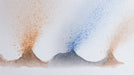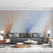 Witness the soft collision of elemental colors. This minimalist abstract mural features three stylized peaks rendered in earthy terracotta and sky blue watercolor splashes against a textured white background. The splatter effects and fluid gradients offer a clean, contemporary look that brings a touch of organic artistry to a home office, modern living room, or minimalist entryway.