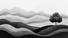 Black and White Rolling Hills with Tree Mural Wallpaper | Minimalist Monochrome Landscape