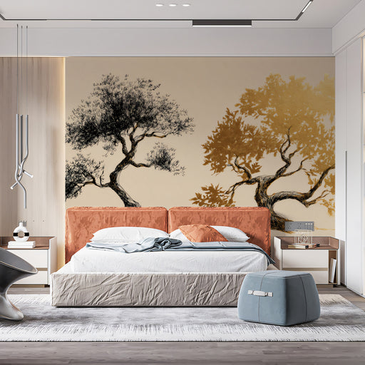Lo stile è ispirato alla natura e minimalista, con un focus sulla semplicità ed eleganza. Questo wallpaper sarebbe ideale per uno studio, specialmente in una casa con un tema di decorazione moderno o rustico. Potrebbe anche funzionare bene in una camera da letto, creando un ambiente tranquillo e riposante.