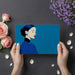 Introduce a touch of modern grace with this stylized female portrait mural. Featuring a woman in profile wearing a textured blue cheongsam (qipao) against a solid, deep blue background, the design is both minimalist and bold. It is a stunning choice for a fashionable lounge, walk-in commercial space, or gallery-style bedroom.