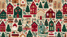 Aggiungi un margine di sicurezza di 6-10 cm. L'area totale è calcolata in metri quadrati e arrotondata al numero intero più vicino.Folk Art Christmas Town Pattern Wallpaper | High Density, Traditional Red and Green, Whimsical Village