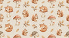 Create a playful woodland retreat with this charming seamless pattern. Featuring sleeping foxes curled up on mushrooms, busy squirrels with acorns, and cute hedgehogs, every element is rendered in a soft, classic watercolor style. The warm earth tones of rust, brown, and beige make this a timeless choice for a rustic nursery or a bedroom inspired by nature exploration.