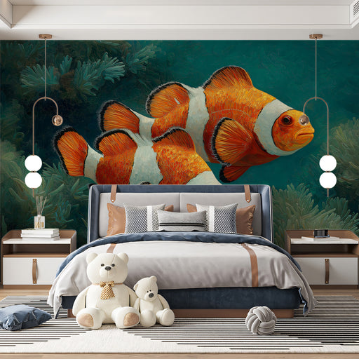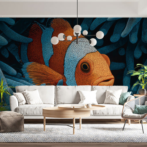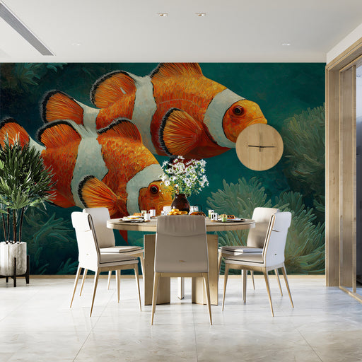 Vivawalls.com’s Tips: Since the mural is dense, use simple, clean-lined furniture in black or deep green to avoid visual clutter. Introduce potted plants or organic shapes to complement the central "flower" design.