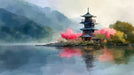 Impressionist Mist Lakeside Pagoda Wall Mural | Dreamy Watercolor Styl — Vivawalls Store Salta il contenuto