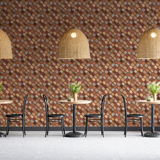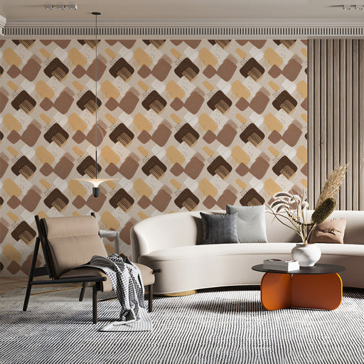 The Modern Abstract Mural Wallpaper is a dynamic and playful piece of art. Its design features a repeating pattern of irregular, abstract block shapes in a lively palette of rich browns, warm golds, and soft beiges. The various textures—from vertical lines to small dots—create a sense of charming chaos and modern artistry. This mural is a perfect choice for a lively living room, a modern playroom, or a creative home office that seeks a bold, unique focal point.