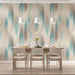 The Modern Ikat Mural Wallpaper is a stylish and artistic piece of art. The design features a bold, vertical pattern inspired by the traditional ikat weaving technique. The fluid shapes in a vibrant palette of turquoise, light beige, and cool gray create a sense of graceful movement and a unique woven texture. This mural is a perfect choice for a bohemian-inspired living room, a modern dining area, or a creative studio that seeks a distinctive and artistic backdrop.