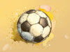 Sketch Soccer Ball Watercolor Mural Wallpaper | Neutral Tones, Subtle Splatters, Warm Yellow Background