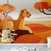 Stylized Lioness Safari Mural Wallpaper | Bold Orange Hues, Flat Graphic Art, Warm Geometric Landscape