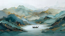 The Traditional Teal Ink Wash Mountain Mural Wallpaper is a serene and culturally rich artwork. It features layered mountain peaks rendered in deep teal and misty grey ink, accented with delicate gold leaf veins and a solitary boat on the water. The combination of ancient Chinese painting techniques and modern metallic accents creates a sophisticated, Zen-like atmosphere. This mural is ideal for a tranquil study, a living room, or a high-end tea room.