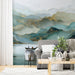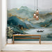 Traditional Teal Ink Wash Mountain Mural Wallpaper | Gold Veined Ether — Vivawalls Store Salta il contenuto