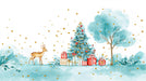 Turquoise Watercolor Christmas Scene Mural Wallpaper | Gold Splatter, Deer Motif, Airy and Artistic