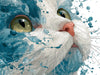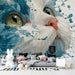 Vibrant Cat Splash Portrait Mural Wallpaper | Cinematic Blue Water Droplets, Detailed Feline Art