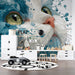 The Vibrant Cat Splash Portrait Mural Wallpaper is a striking, high-energy, and detailed artwork. It features a close-up of a cat's face emerging through a powerful splash of crystal-clear blue water. The intricate detail in the fur, whiskers, and glowing eyes against the dynamic liquid motion creates a powerful visual impact. This mural is ideal for a modern kids room, a pet lover's sanctuary, or any space seeking a bold, contemporary focal point.