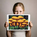 The Vibrant Orange Mushrooms in Dark Forest Mural Wallpaper features a cluster of large, stylized orange mushrooms growing in a dark, lush forest setting. The bold colors and graphic vector art style create a whimsical and slightly magical atmosphere. This mural is perfect for a creative space or a fun, nature-inspired dining room.