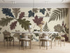 Vintage Botanical Wallpaper, Autumn Leaves and Fern Wall Mural, Classic Nature Illustration for Bedroom