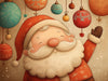 The Vintage Santa Portrait Mural Wallpaper is a close-up, nostalgic illustration of Santa Claus rendered in a muted, sepia-toned palette with visible pencil or chalk texture. Santa is shown in a classic pose, waving, framed by dangling, vintage-style ornaments in muted red and teal. The aged background and soft lighting create a warm, comforting, and old-world holiday charm. This mural is ideal for a classic living room, a cozy den, or a bedroom seeking a traditional, comforting aesthetic.