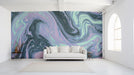 Abstract Teal and Lavender Marble Swirl Wallpaper, Modern Fluid Art Mural, Elegant Artistic Wall Decor, Custom Size Premium Peel and Stick
