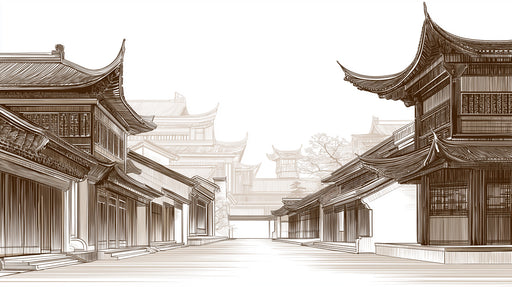 詳細を全部見るHistoric Chinese Street Mural Wallpaper | Sepia Architectural View