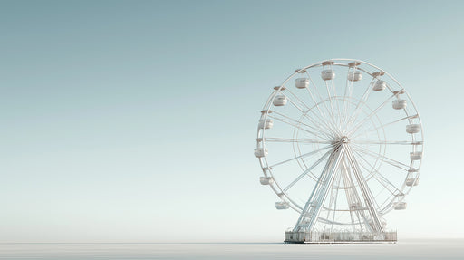 詳細を全部見るMinimalist Horizon Ferris Wheel Wall Mural | Crisp White Aesthetic & Architectural Geometry Decor