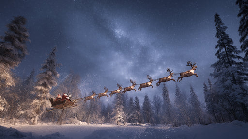 VIVAWALLSThe Hyper-Realistic Night Sleigh Ride Mural Wallpaper is a stunning, cinematic depiction of Santa's journey. Santa's sleigh, pulled by reindeer, so...