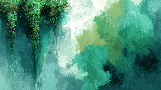 VIVAWALLSThe Abstract Waterfall Mural Wallpaper captures a serene, mystical forest scene. The design features a lush green vine hanging from the top, flowin...