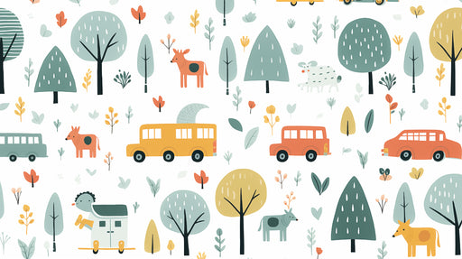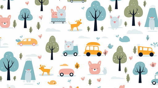 詳細を全部見るKawaii Car & Animal Doodle Pattern | Pastel, Forest Theme, Lighthearted Repeat