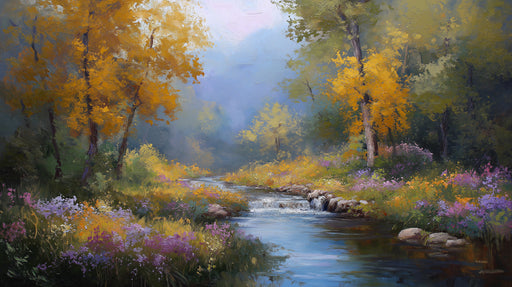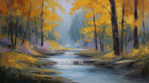 詳細を全部見るTranquil Autumn River Mural Wallpaper | Peaceful Forest Landscape with Flowing Creek