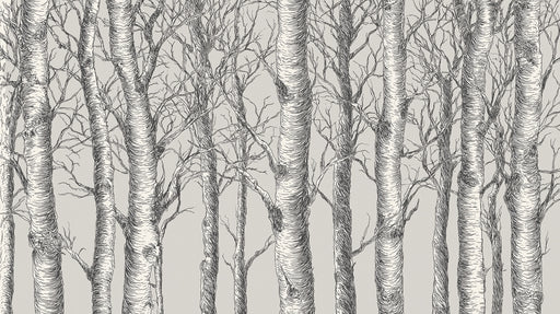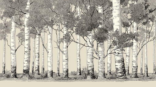 詳細を全部見るHand-Drawn Aspen Forest Mural Wallpaper | Monochrome Woodland Scene