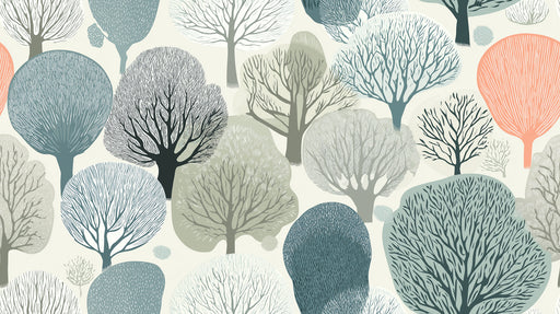 詳細を全部見るAbstract Nordic Tree Pattern Mural Wallpaper | Stylized Forest Landscape