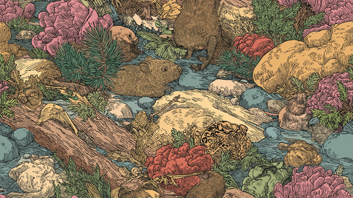 詳細を全部見るDetailed Woodland Creek Pattern Mural Wallpaper | Natural Forest Animals & Foliage