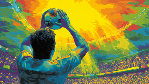 VIVAWALLSThe Psychedelic Victory Celebration Mural Wallpaper is a burst of vibrant, unconventional energy. It features a soccer player holding the ball abov...