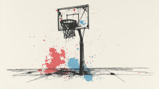 VIVAWALLSThe Basketball Hoop Mural Wallpaper features a striking and energetic design of a basketball hoop rendered in bold, scribbled red lines. The hoop a...