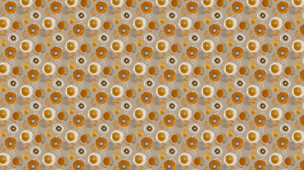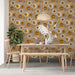 The Abstract Floral Mural Wallpaper is a playful and artistic statement. Its design features a repeating pattern of bold, stylized abstract flowers in a lively palette of rich orange, brilliant gold, and soft white. The scattered dark dots and organic shapes create a sense of whimsical movement and modern flair. This mural is a perfect choice for a lively living room, a modern dining area, or a creative home office that seeks a unique, artistic charm.