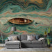 Inspired by the fluid motion of molten marble, this wall mural captures a mesmerizing swirling river of teal and gold. The dynamic, textured currents create a sense of opulent energy and flow, perfect for creating a dramatic focal point in foyers or high-end dining rooms.