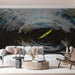 The Abstract Kayak Vortex Mural Wallpaper is a dramatic and abstract artwork. It features a tiny, vivid yellow kayak caught in the center of massive, dark, circular ripples and chaotic, expressionist brushwork in deep gray and blue. The composition is highly dynamic, creating a sense of being drawn into a powerful, swirling vortex. The contrast between the bright yellow boat and the dark water is intense and captivating. This mural is ideal for a bold accent wall, a creative living room, or a space celebrating dynamic, abstract motion.