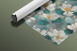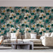 Abstract Magnolia Bloom Watercolor Effect Repeating Print Mural Wallpaper | Teal Watery Background, Contemporary Floral