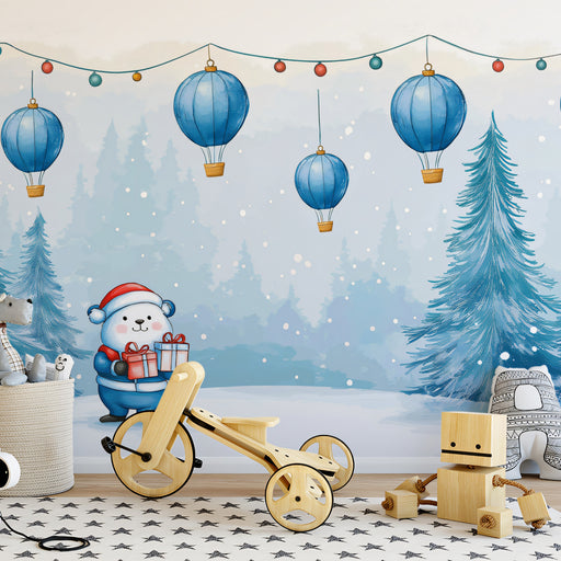 Add a safety margin of 6 to 10cm. The total area is calculated in square meters and rounded to the nearest whole number.Cheerful Penguin Duo Mural Wallpaper | Blue Animal Print for Kids
