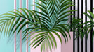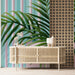 Chic Geometric Tropical Palm Mural Wallpaper | Pink Box, Blue Black White Stripes