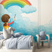 Child Painting Rainbow Clouds Mural Wallpaper | Cheerful Art, Vibrant Hues, Imagination Theme